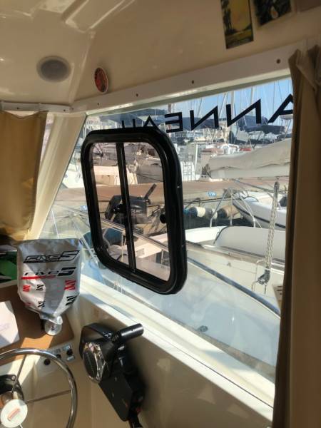 La société Plexi Boat basé au Cannet 06110 à réaliser la fabrication, la pose, ainsi que le démontage d'un hublot en Plexiglas PMMA coulé teinté bronze foncé en 10 mm . Notre équipe a également réalisé les joints de finition et le nettoyage de la surface du bateau.