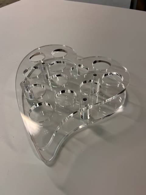 La société PlexiBoat basée au Cannet 06110, dévoile une création à la fois ludique et élégante : un porte-shooters en plexiglass incolore, de la marque PERSPEX, façonné en forme de cœur.