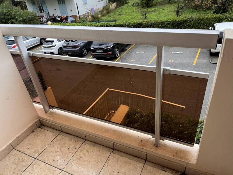 à réalisé la fabrication et la pose de plaques en plexiglass teintée bronze fumée pour garde-corps d'une terrasse situé à Cannes. Pose réaliser en 1h15 par notre équipe et fait avec soins.